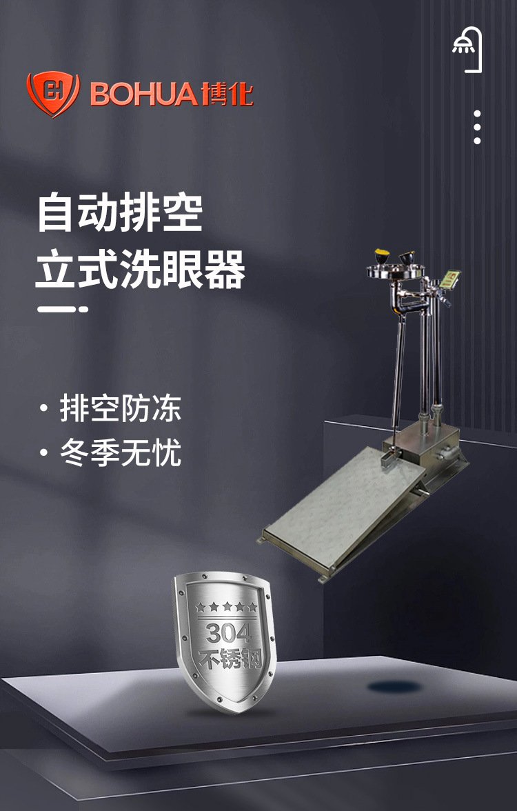 博化304不锈钢洗眼器工业用立式自动排空防冻化工厂脚踏冲眼机