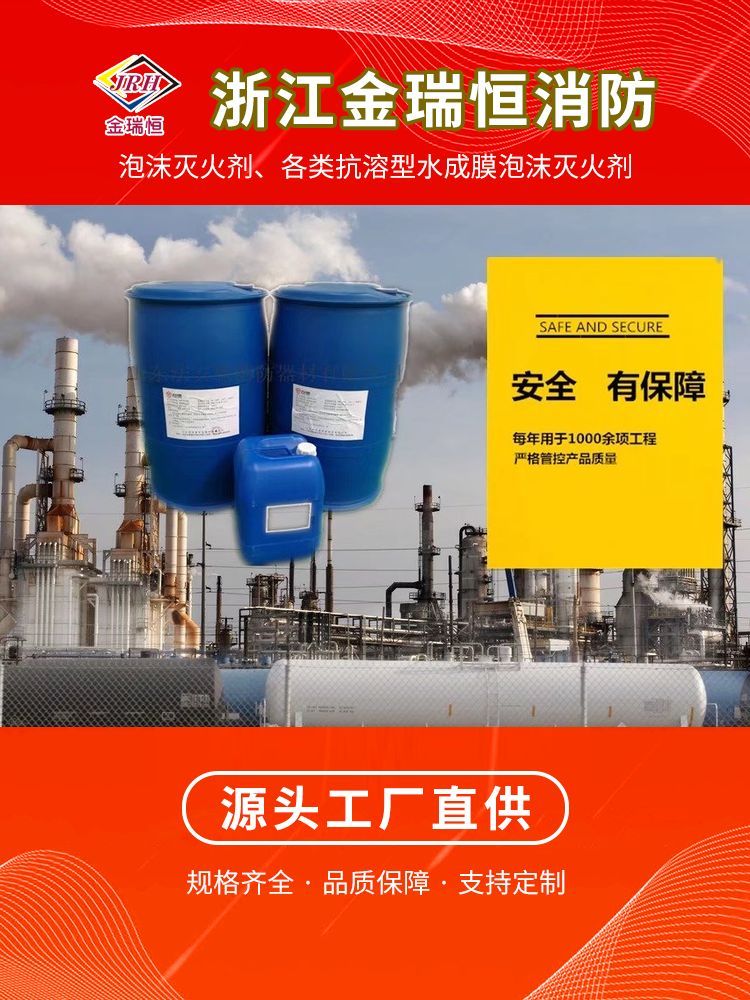 金瑞恒 S-6-AB厨房设备灭火装置灭火剂 国标抗溶性水成膜泡沫灭火剂6?FF/AR由碳氢表面活性剂、氟碳表面活性剂、助剂、稳定剂、抗冻剂、防腐剂等与离子水配制而成。该灭火剂除具有一般水成膜泡沫灭火剂的扑灭油类火灾的性能外,在生产过程中添加极性成膜剂,在极性易燃液体表面形成一层膜,保护住泡沫不受破坏,可以迅速扑救醇、酯、醚、醛等极性溶剂火灾的,是一种多功能泡沫灭火剂。它可以通过各种低倍数泡沫产生设备与水按3:97或6:94的比例混合产品泡沫。广泛适用于油田、炼油厂、油库、船舶、大型化工厂、化纤厂、石化企业、化工产品仓库、溶剂厂等重点防灾场所。