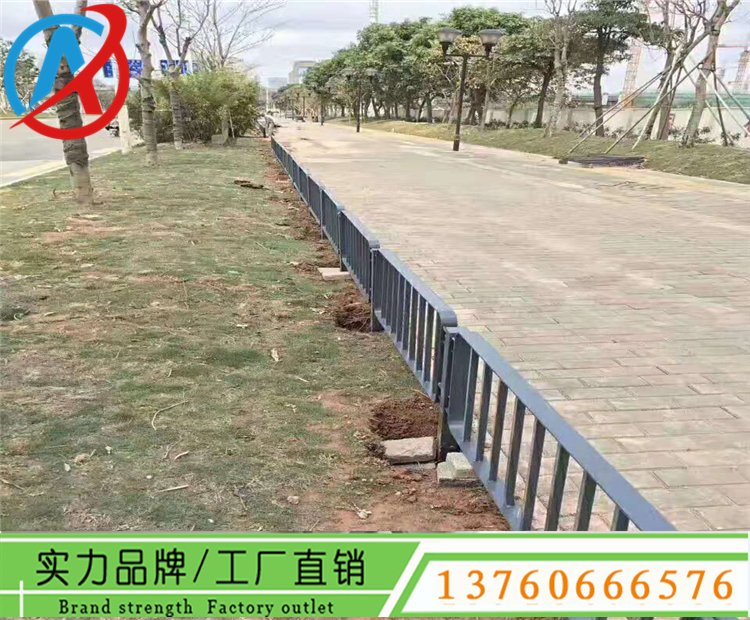 路中车流分隔防撞栏杆定制 茂名路侧预埋式铁艺护栏