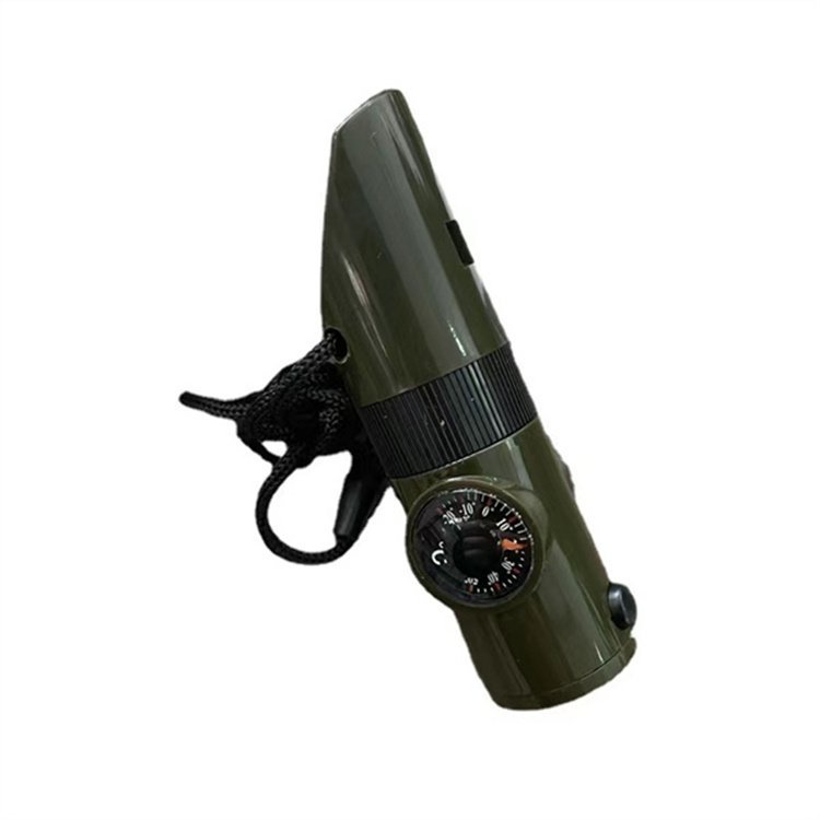 功能:口哨、指南针、温度计、放大镜、反光镜、LED灯、储物仓