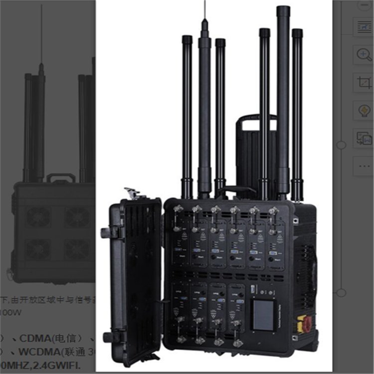 设备整体结构和干扰频率范围,适用于国内所有地区,适用于排爆人员近距离转移或处置可疑无线电