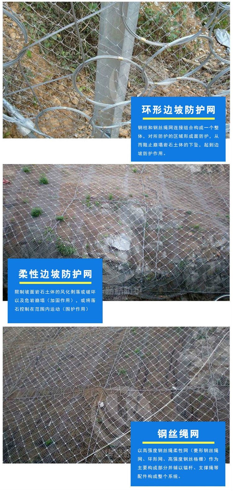 材质:钢丝绳网、普通钢丝格栅(常称铁丝格栅)和TECCO高强度钢丝格栅 。