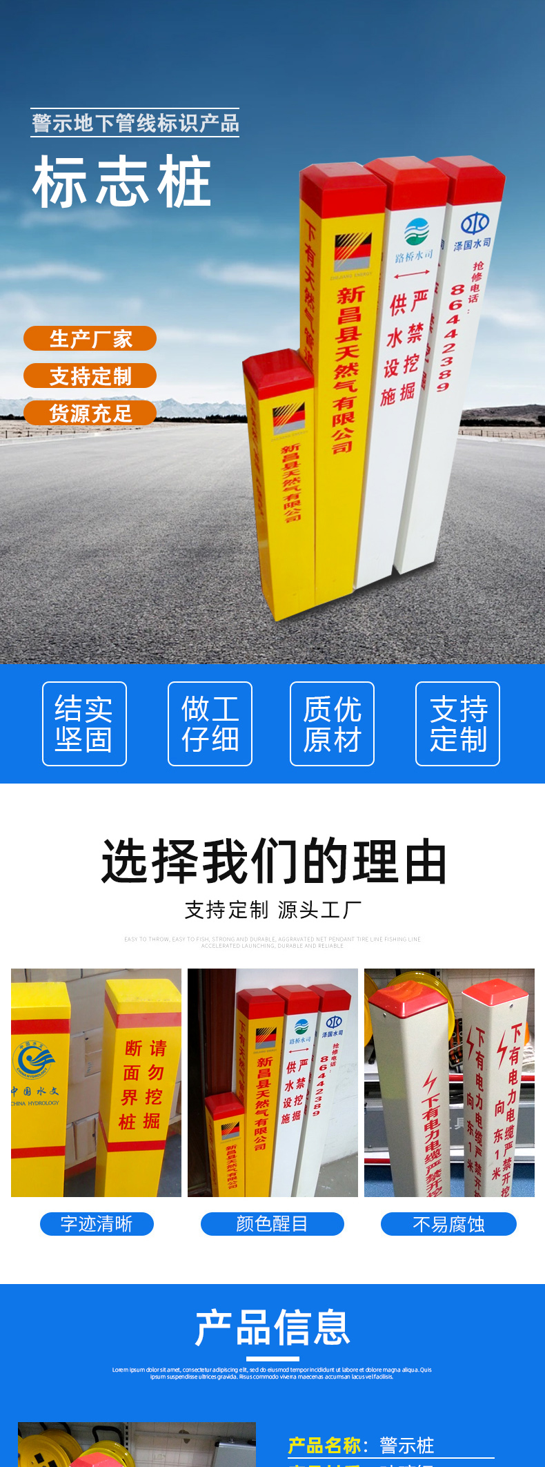 厂家供应电力电缆标志桩玻璃钢警示牌地埋石油燃气管道PVC警示桩