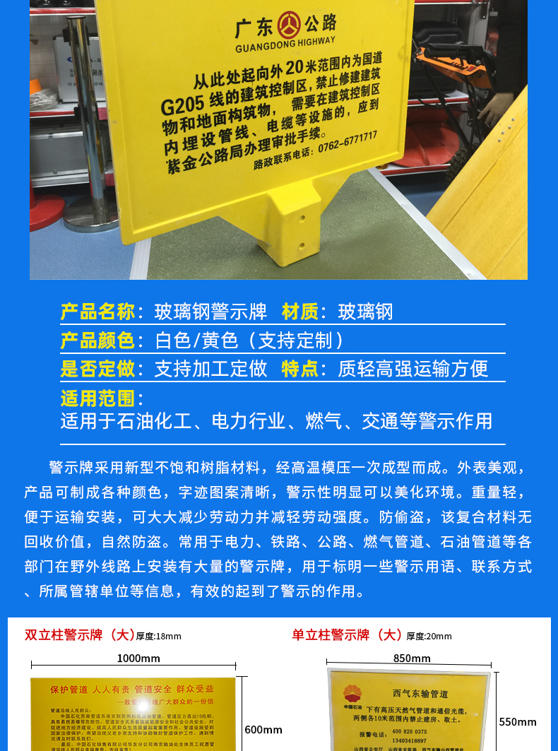 标识警示牌地埋水管光缆电缆通信电力禁止开挖高压危险严禁施工