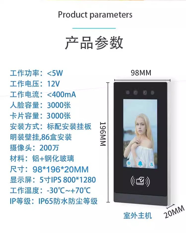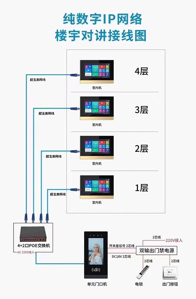 翔顺别墅可视对讲门铃套装人脸识别门禁一体机手机远程POE门口机
