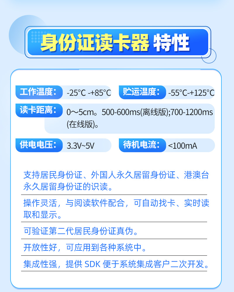 工作频率 | 符合ISO14443 Type B标准;13.56MHz±7kHz(fc) | ||