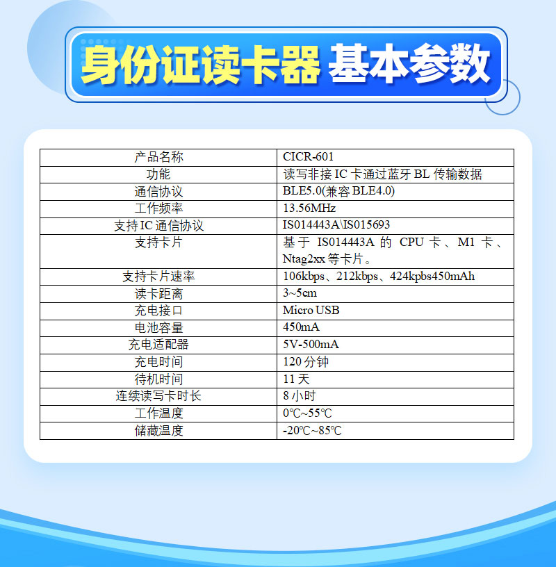 支持卡片速率 | 106kbps、212kbps、424kpbs450mAh | ||