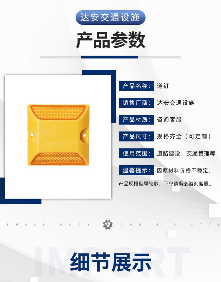 达安厂家批发铸铝道钉双面反光路面凸起道钉