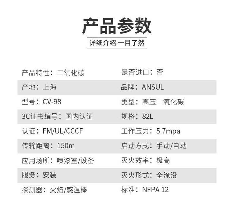 喷漆室消防灭火系统 安素高压二氧化碳系统 FM/UL认证 二氧化碳钢瓶 品牌 | ANSUL | ||