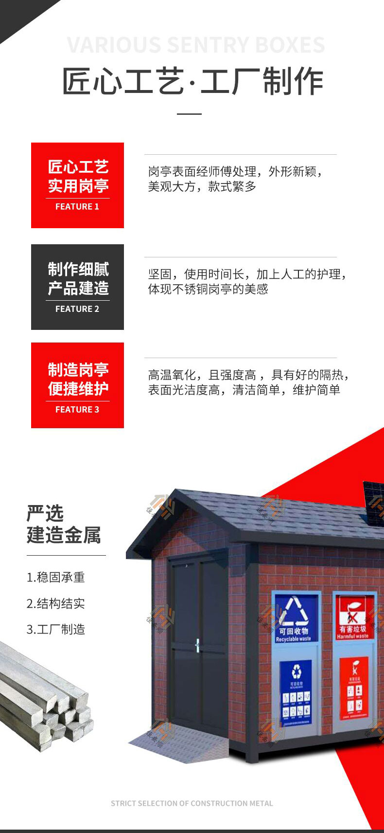 恒安顺定制垃圾分类亭街道钢结构垃圾回收站工厂制作各式岗亭