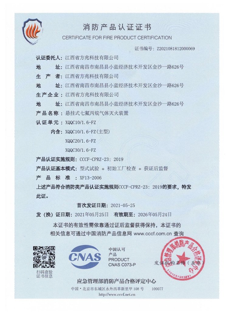 【方兆】温控68℃启动10公斤悬挂式七氟丙烷灭火器XQQW10/1.6 品牌 | 方兆科技 | ||