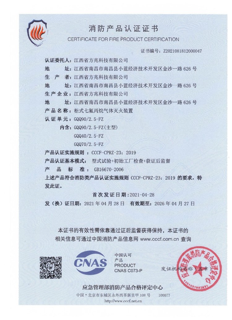 【方兆】配电室机房柜式无管网七氟丙烷气体灭火装置GQQ120/2.5 品牌 | 方兆 | ||