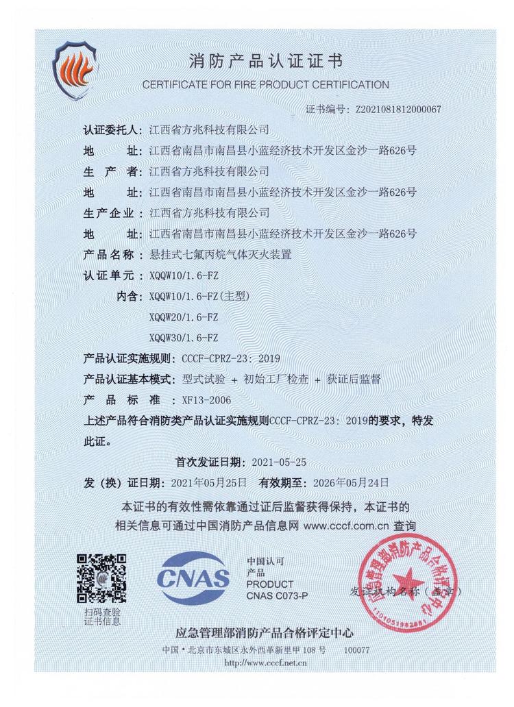 小型机房电磁启动20公斤七氟丙烷悬挂式灭火器 XQQC20L/1.6 品牌 | 方兆 | ||