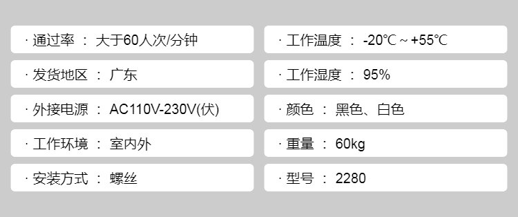 通过率 | 大于60人次/分钟 | ||