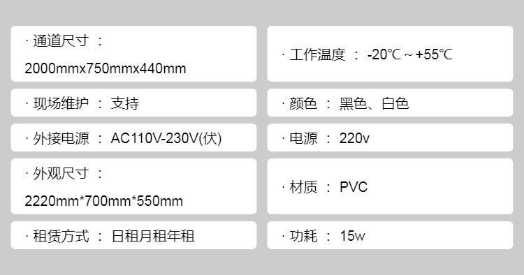 通道尺寸 | 2000mmx750mmx440mm | ||