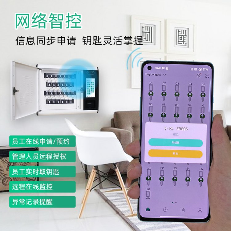 兰德华智能钥匙柜K26壁挂式电子密码指纹刷卡联网远程管理