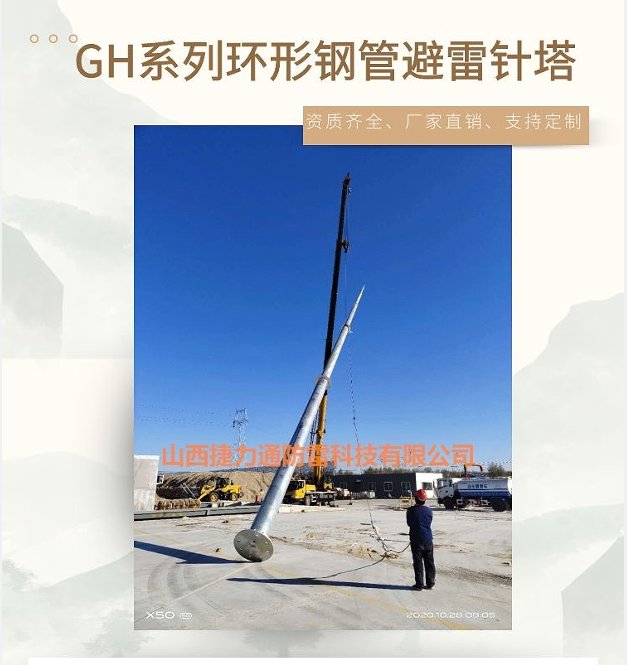 GH环形钢管杆独立定制避雷针塔专业防雷避雷塔、避雷针施工1