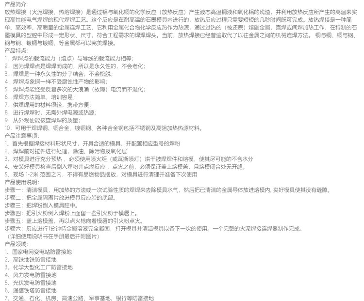 火泥焊接(放热焊接)国电效率!精品!提供检测报告合格证