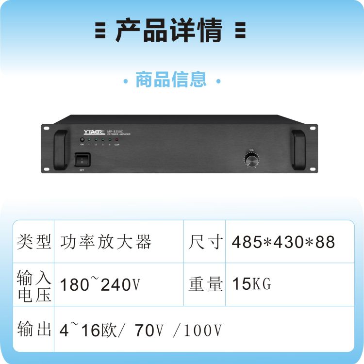 YTAER音泰尔公共广播系统纯后级定压功率放大器