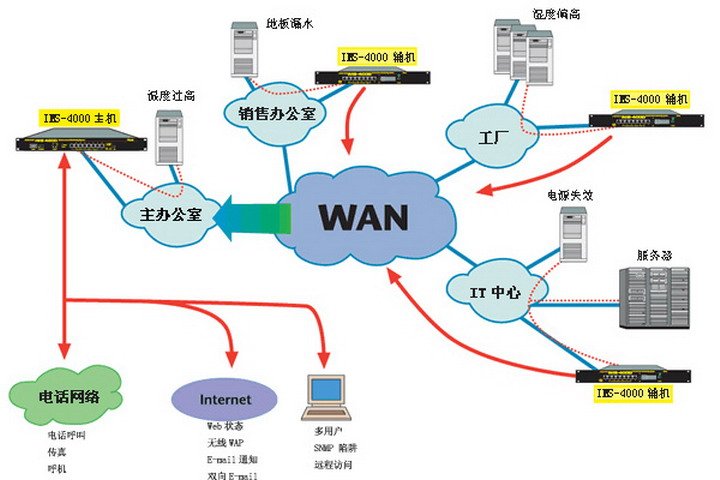 它是专为现代计算机及网络通信机房而设计的环境及网络监控报警系统。IMS-4000 除可监视机房内的环境参数外,更可监控网络上的IP设备。它可通过多种不同的通信方式发送报警信息。而且IMS-4000 已结合了网页服务器及电邮服务器的功能,用户可方便地在互联网或通过电子邮件得到机房的信息。