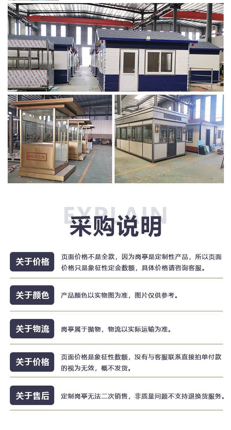 产品售后:定制岗亭无法二次销售,非质量问题不支持退换。