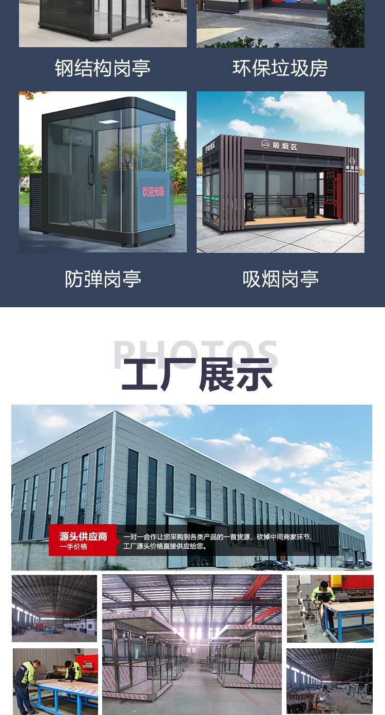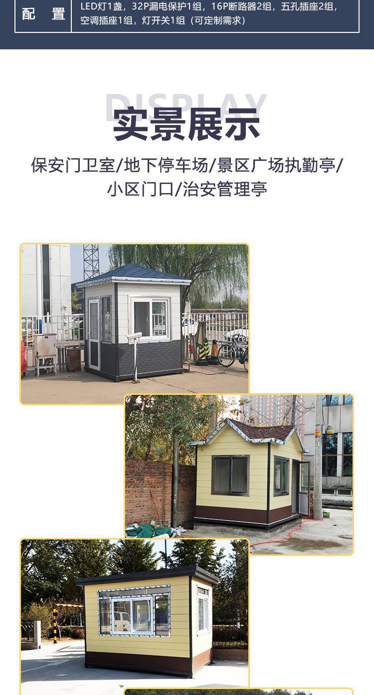 1.保安岗亭、收费岗亭、治安岗亭、站台岗亭、门卫室、售货亭、吸烟亭、移动厕所、垃圾分类房、大型移动办公室等;