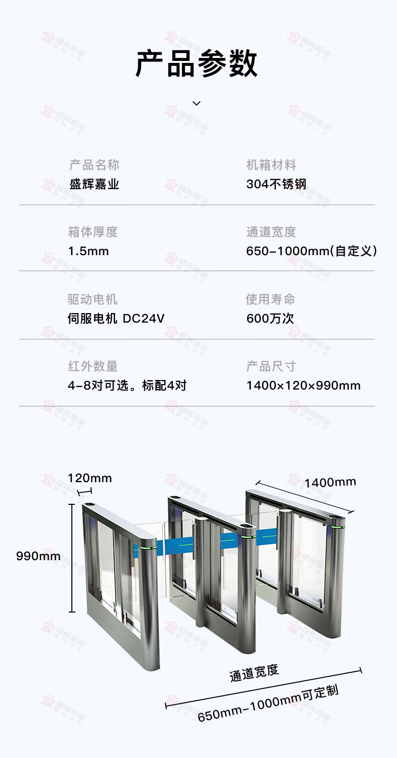 盛辉嘉业人行通道闸人脸识别系统小区实名身份证机工地多通道厂家