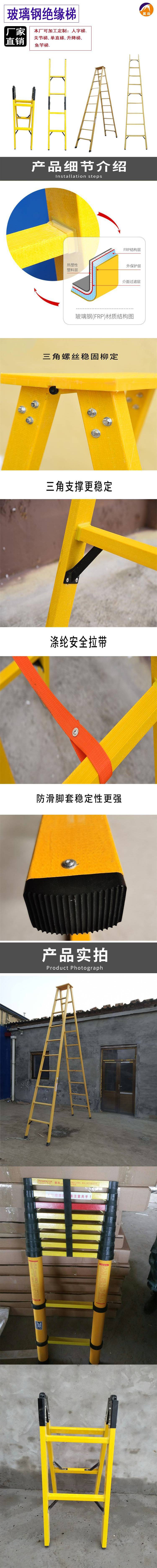 金淼牌2米绝缘梯水电工程伸缩梯环氧树脂鱼杆梯携带方便