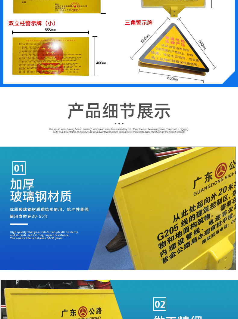 标识警示牌地埋水管光缆电缆通信电力禁止开挖高压危险严禁施工