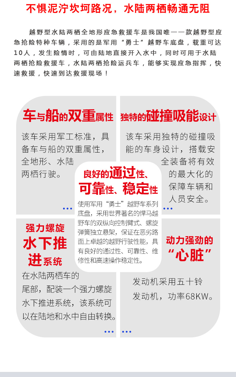 用途水陆两用巡逻大动力柴油抗洪抢险越野