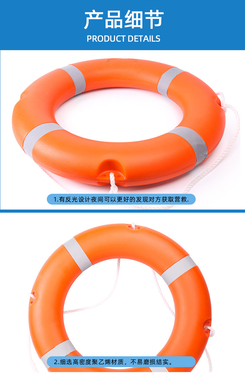船用实心塑料成人游泳漂流2.5KG聚乙烯防汛应急救援救生圈