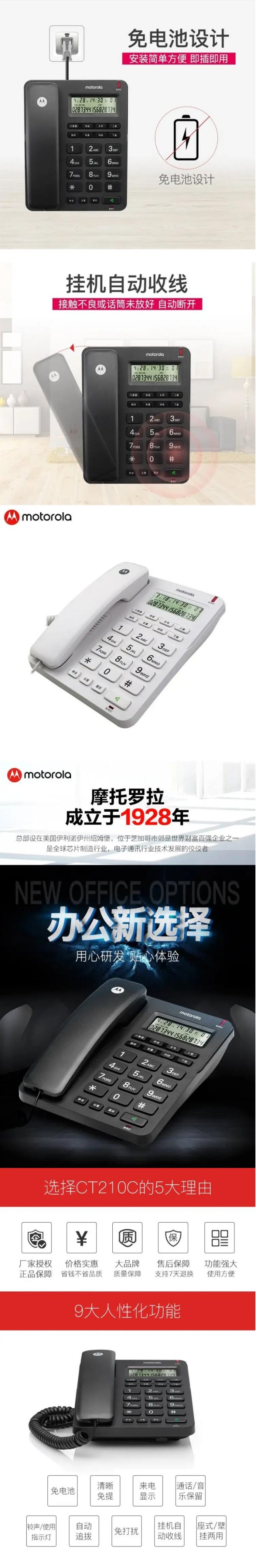 摩托罗拉CT210C模拟线路电话机酒店话机无电源座机黑白两款