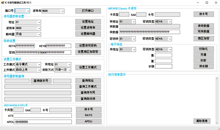 10、功能:读卡号ID,读写卡,扇区加密,增值减值(钱包充值功能)等