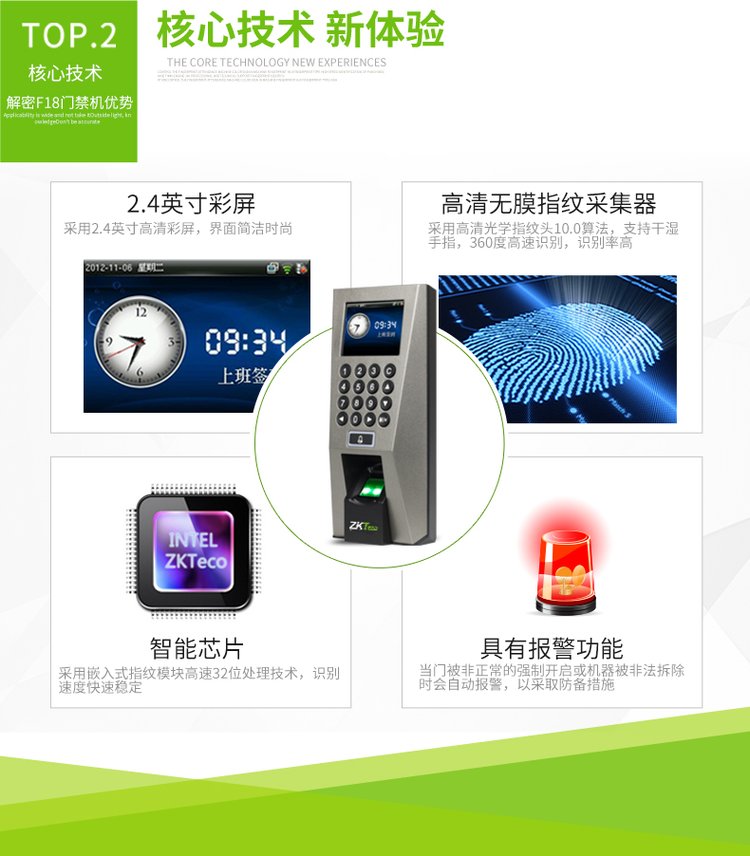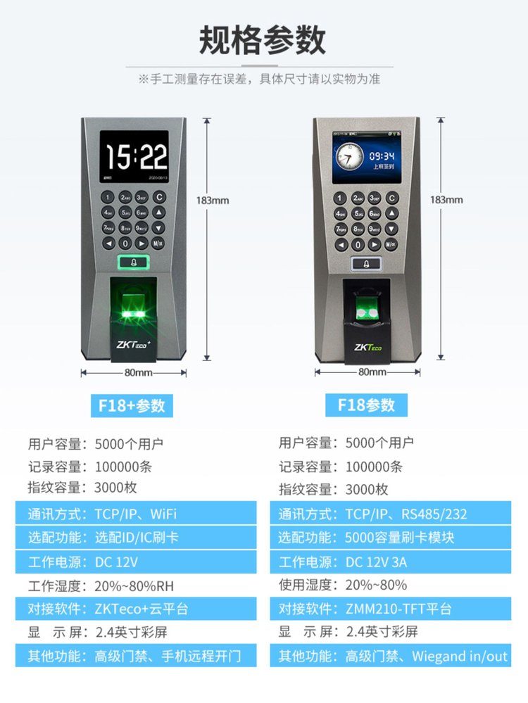 中控智慧熵基科技F18指纹密码ID/IC卡管理智能门禁考勤一体机套装 品牌 | 中控 | ||