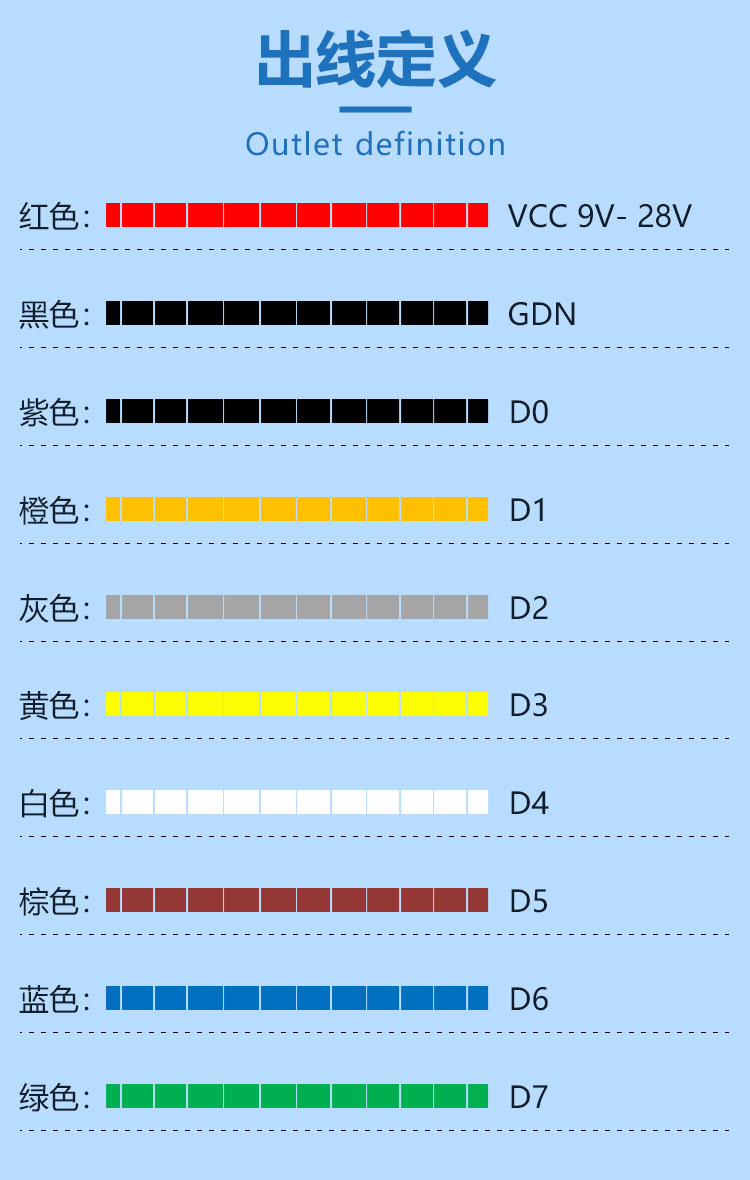 通信接口 | 8位并行,NPN晶体管输出 | ||