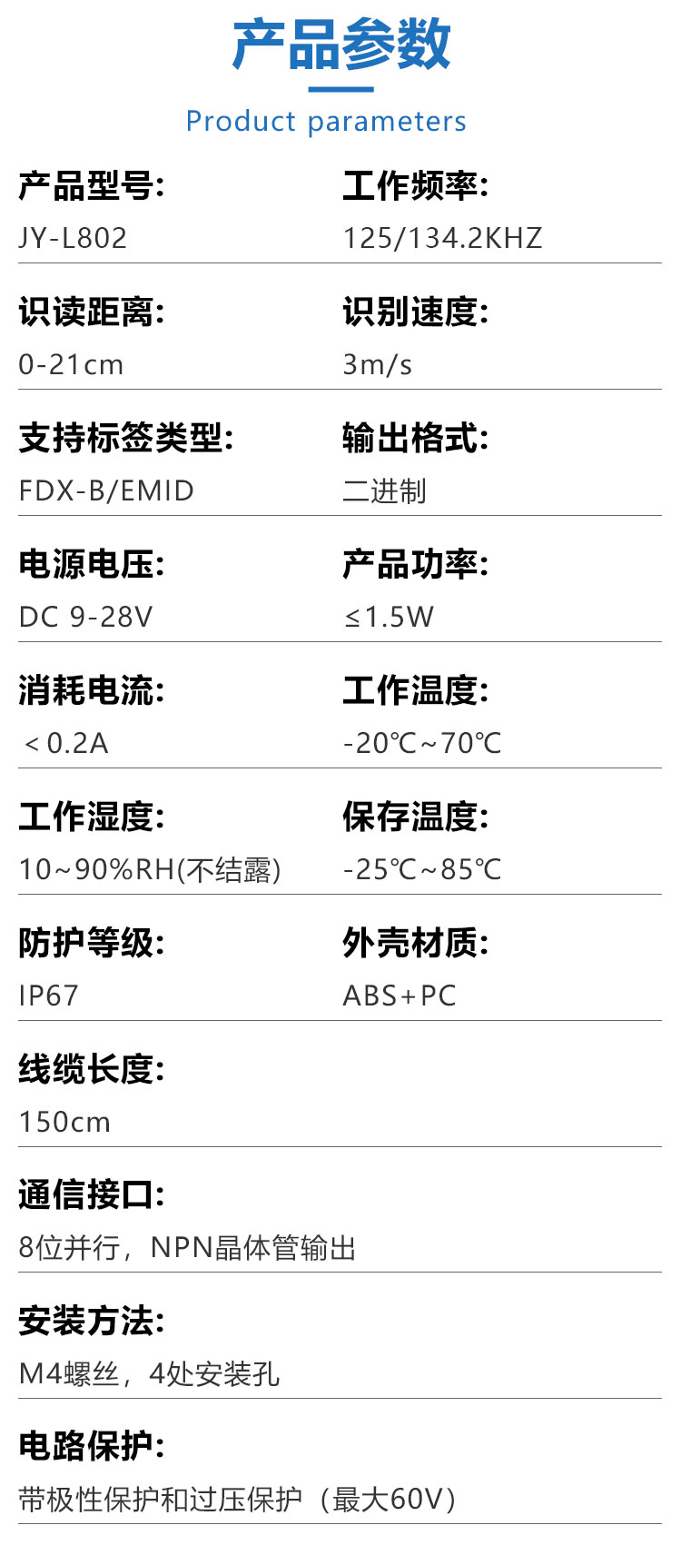 支持标签类型 | FDX-B、EMID | ||