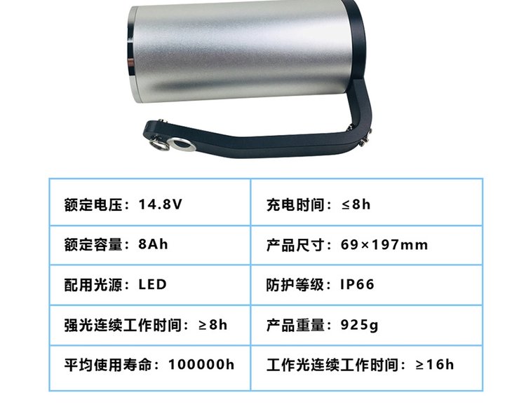 单兵手提放爆探照灯巡逻探照灯带电量显示红色警示光