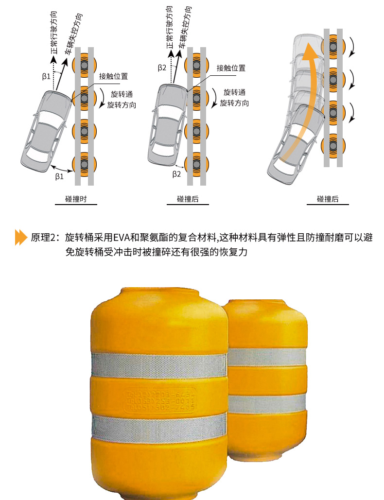 旋转桶护栏EVA可导向防撞桶高速公路国道弯道防撞桶滚筒式防撞栏