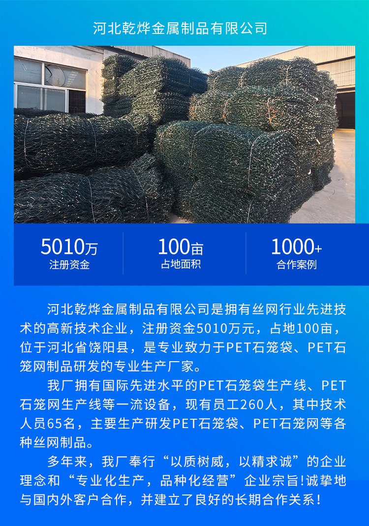 乾烨聚酯石笼网防止河岸遭水流破坏规格齐全支持验厂