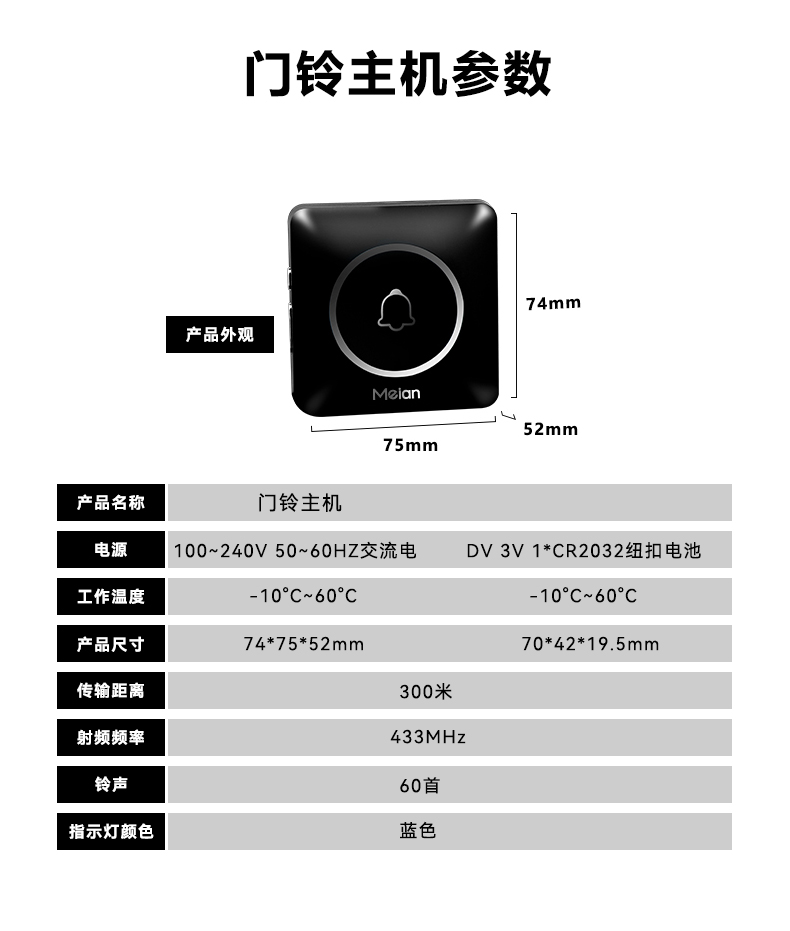美安无线门铃 一键报警居家养老大声音音乐铃声声光显示铃铛