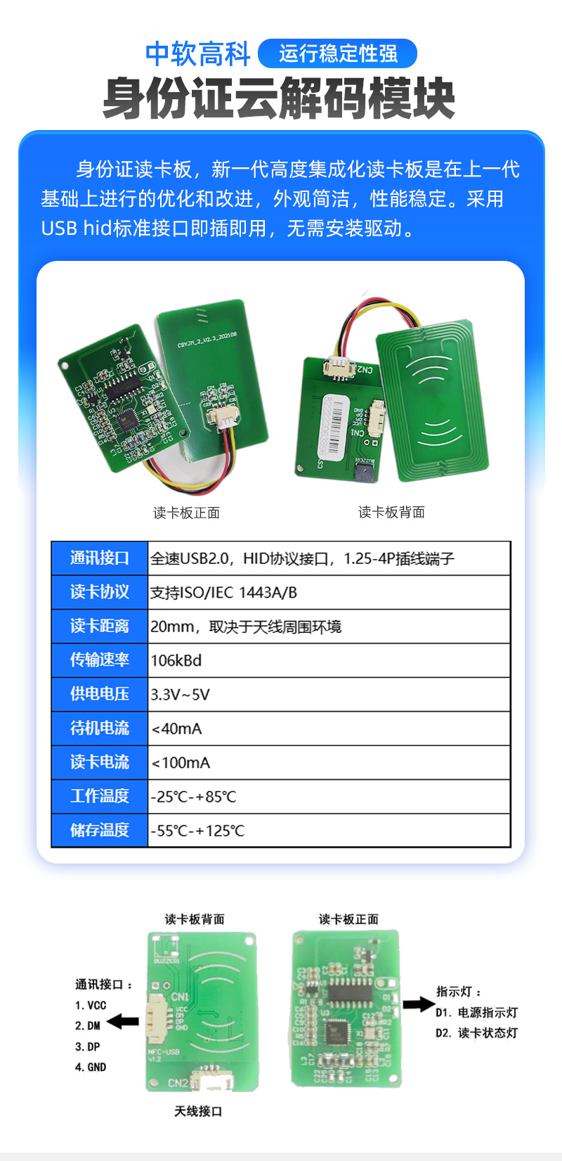 读卡协议 | 支持ISO/IEC 1443A/B | ||