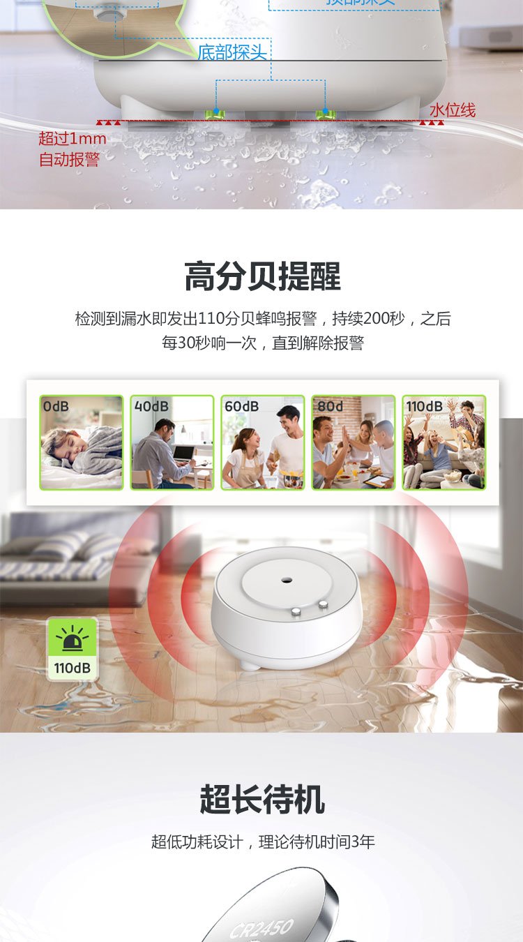 智能漏水报警器水浸漫水探测提醒装置APP远程推送通知
