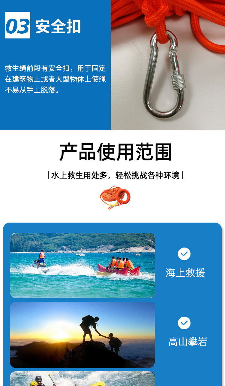 水域反光夜光救生船用救生圈漂浮绳水面逃生救援绳