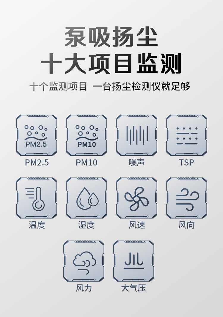 测量范围PM2.5/PM10/噪音/温度/湿度等