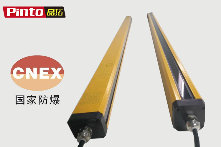 品拓的防爆光栅不同于普通的安全光栅,防爆光栅的要求更高,确保不产生电火花,在危险易爆的环境中起到保护人身安全的作用。防爆光栅是由红外线安全光栅经过特殊工艺处理设计制造符合国际工业安全标准(执行标准:EN61496-1/2),品拓防爆光栅的防爆标志为Ex nR IIC T6 Gc,该款产品主要应用于适用于爆炸性气体环境2区危险场所、 IIA、IIB 、IIC级爆炸性气体环境、可燃性粉尘环境20区、21 区、22区环境、温度组别为Tl-T6的环境,防护等级IP65。