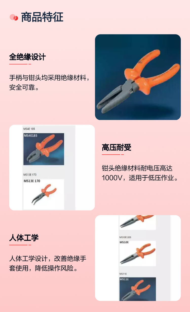 百图喜安全防护用品提供法国SFE全绝缘电工钳MS系列1000V