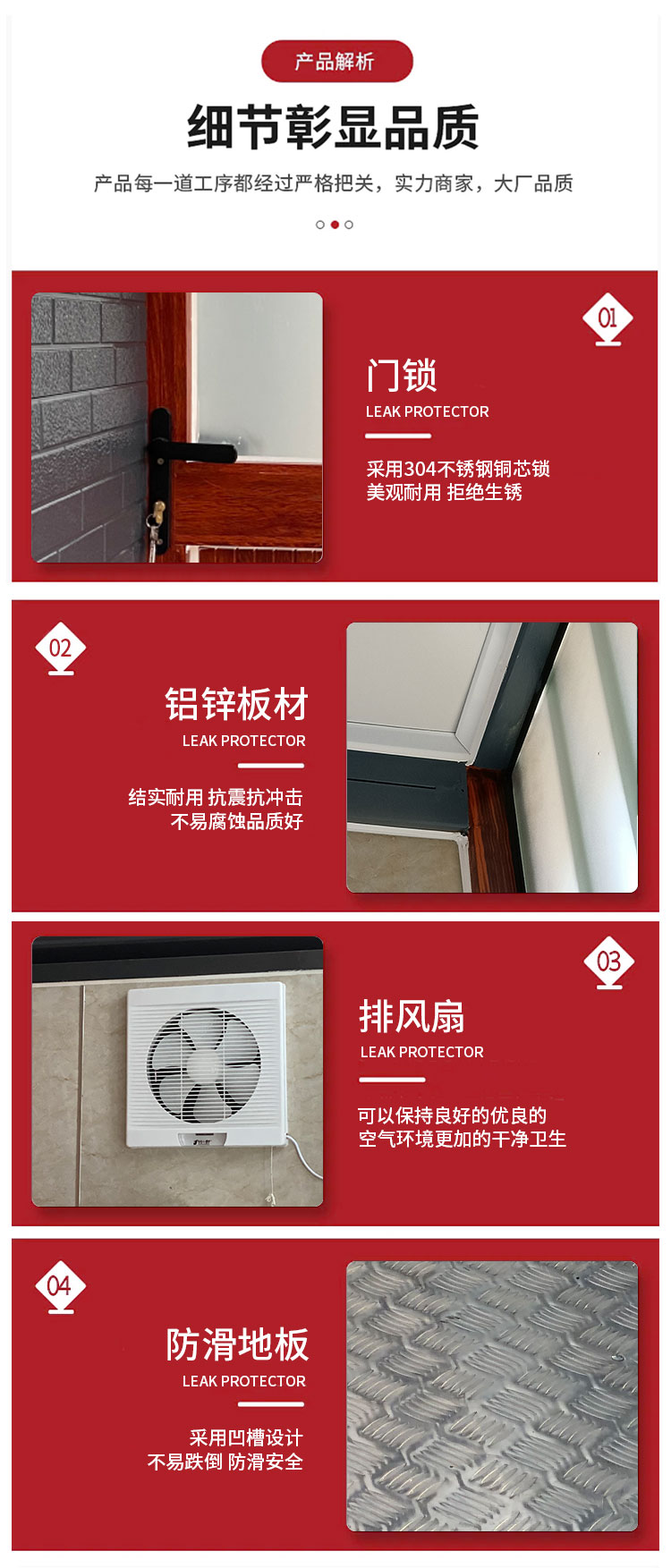 配套设施 | 衣帽钩、手纸架、洗手盆、排气扇、照明灯 | ||