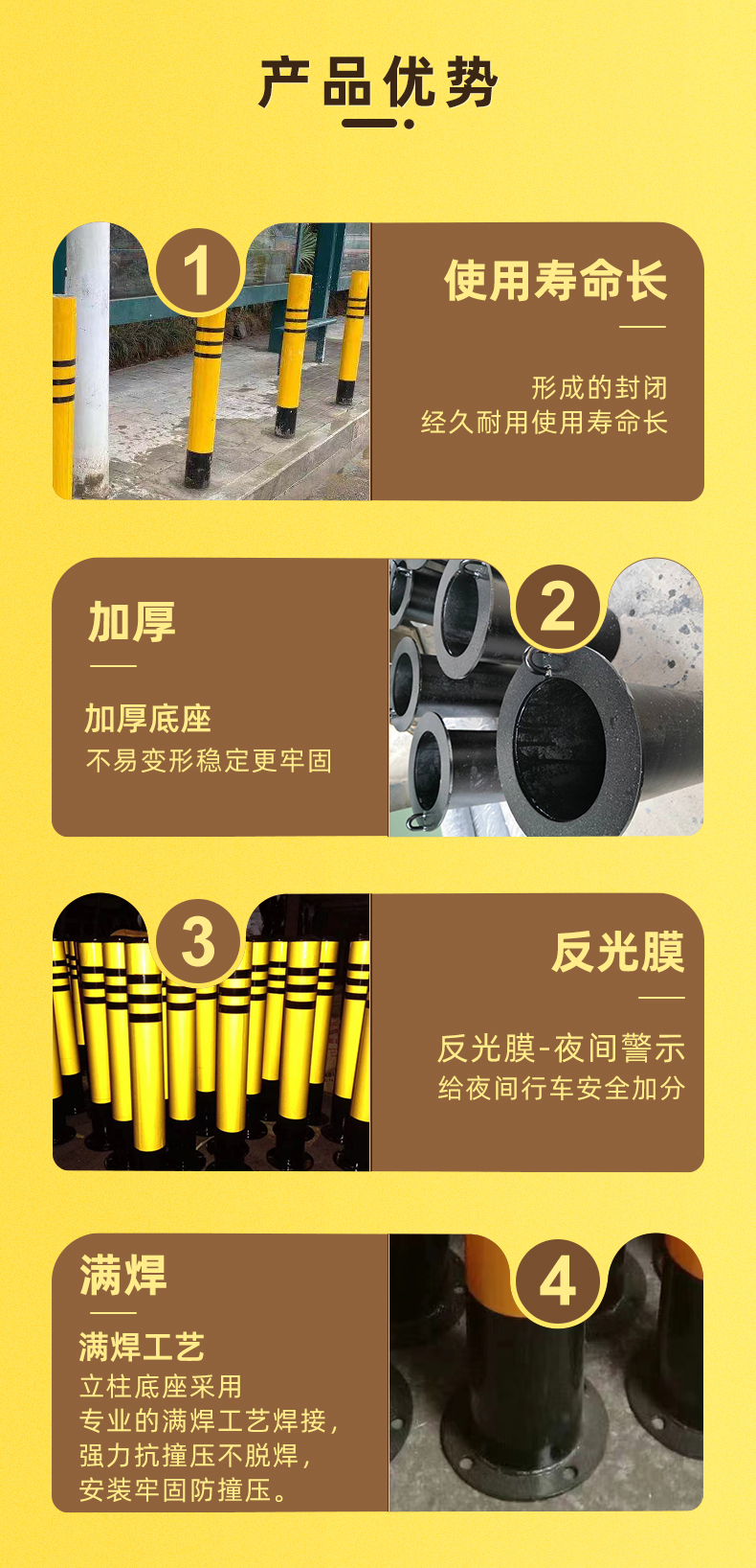 防撞柱红白道口标钢管警示柱镀锌管立柱隔离桩反光