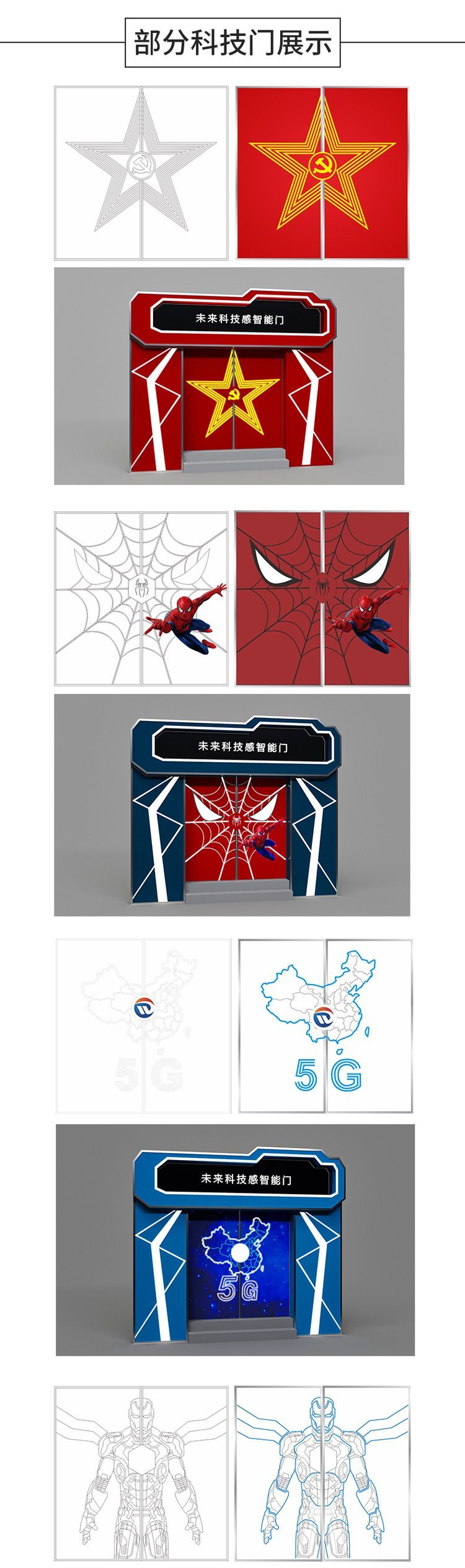 门体部分 | 木板、装饰铝塑板、玻璃面板,单面流水散射光线 | ||