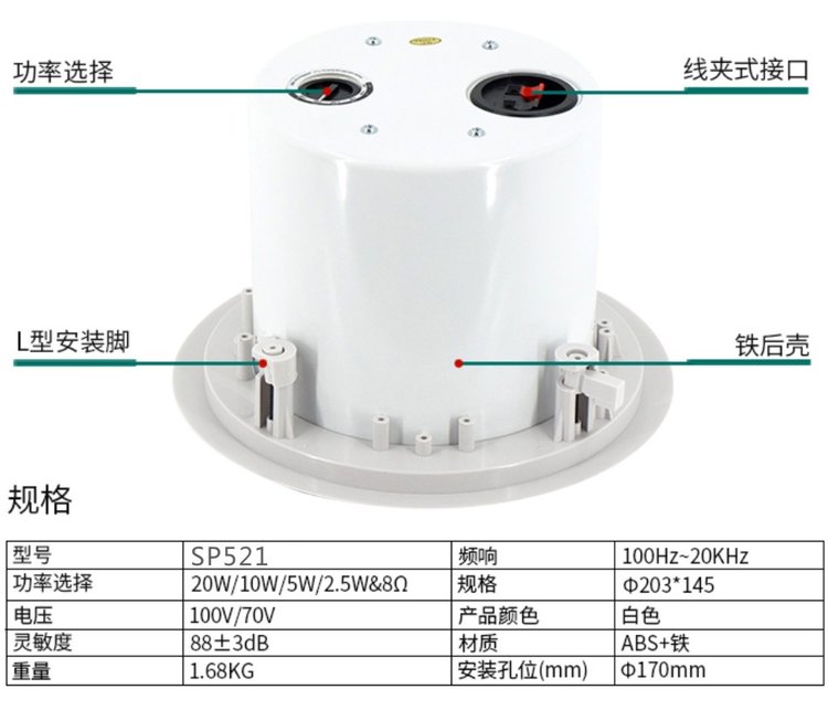 功率选择 | 20\/10\/5\/2.5W\/8Ω | ||